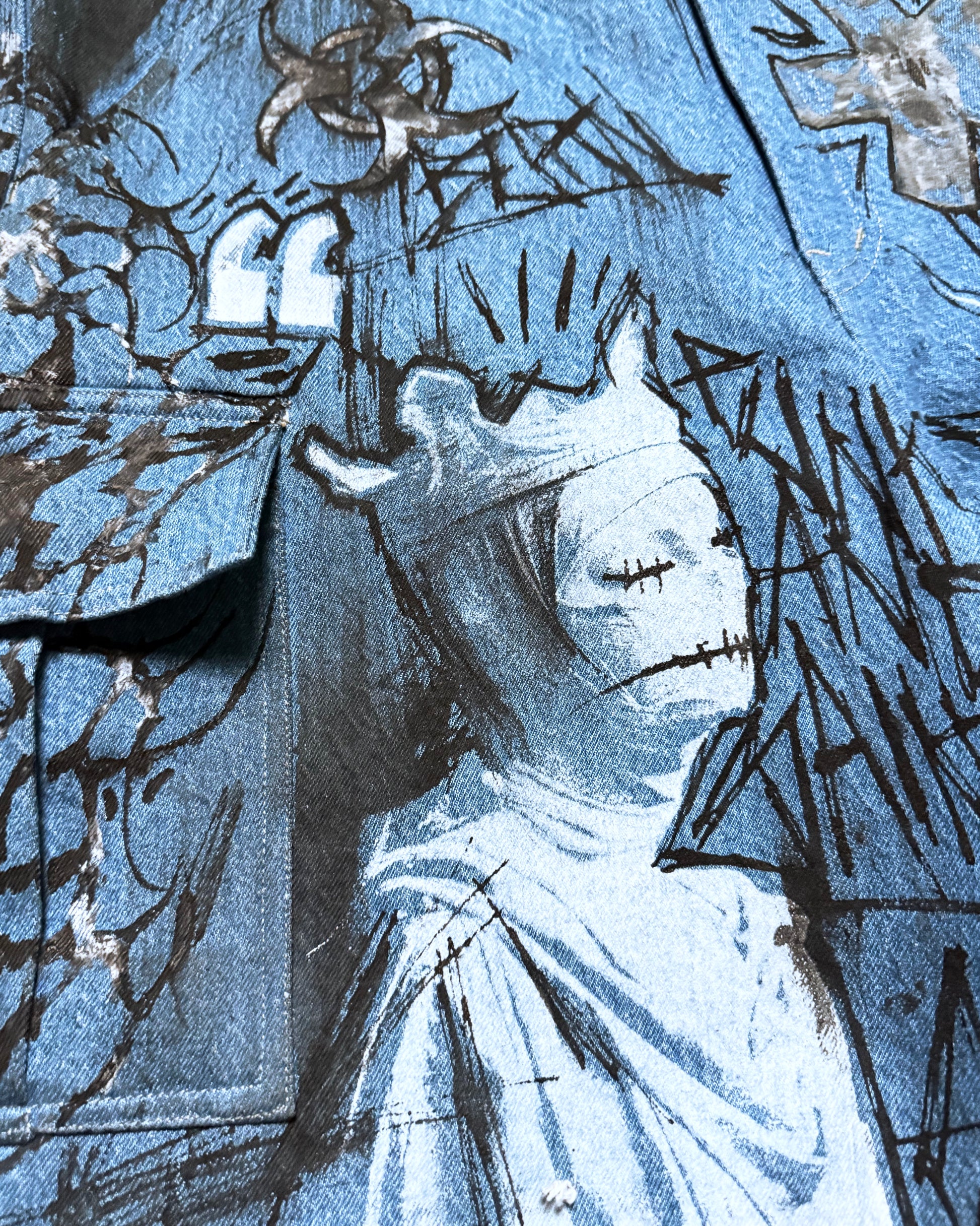 the art is genuinely insane the stitching where there are multipule layers of denim is beautiful, i love how these look they are easily my favorite buy worth every dollar.