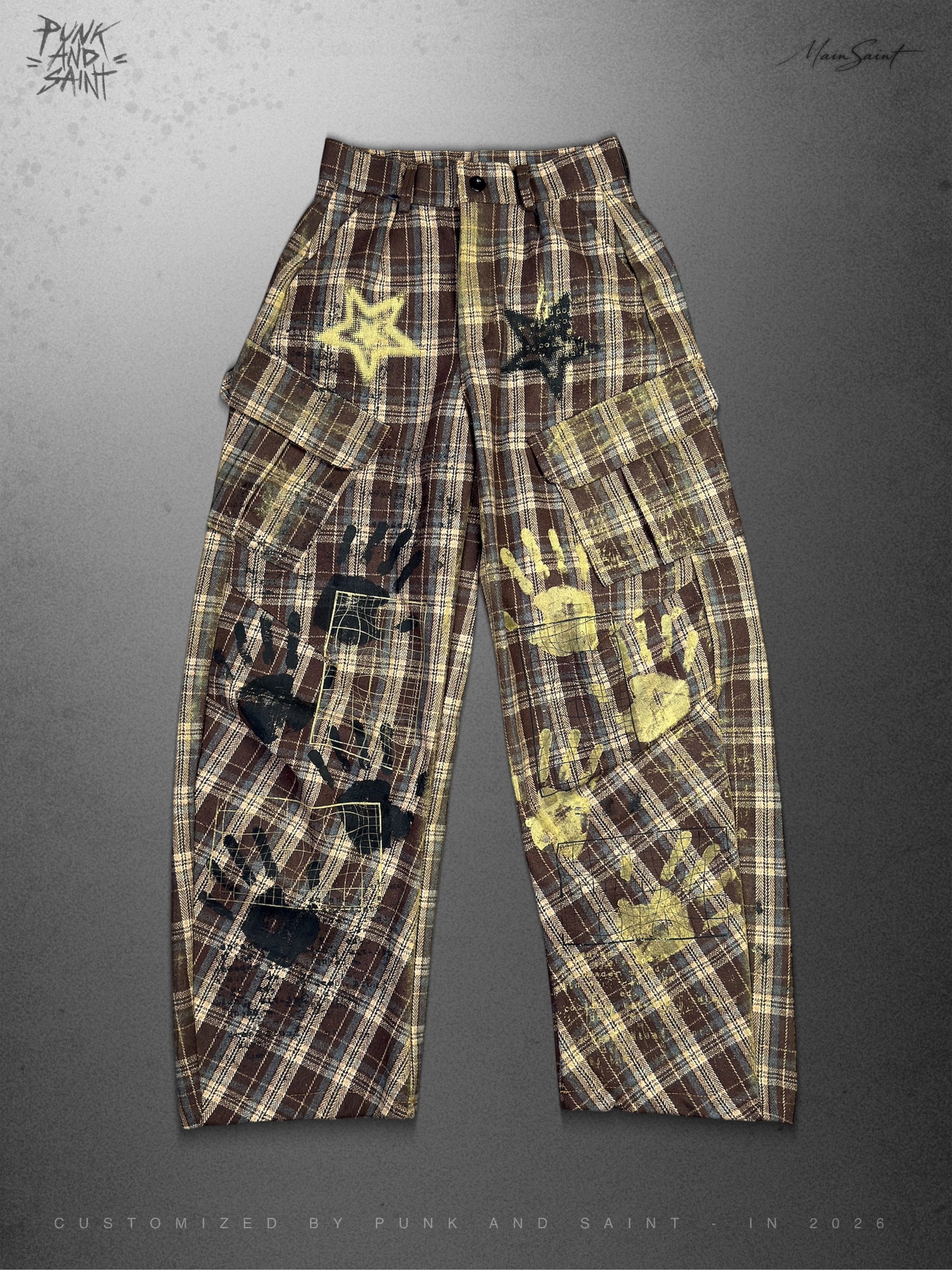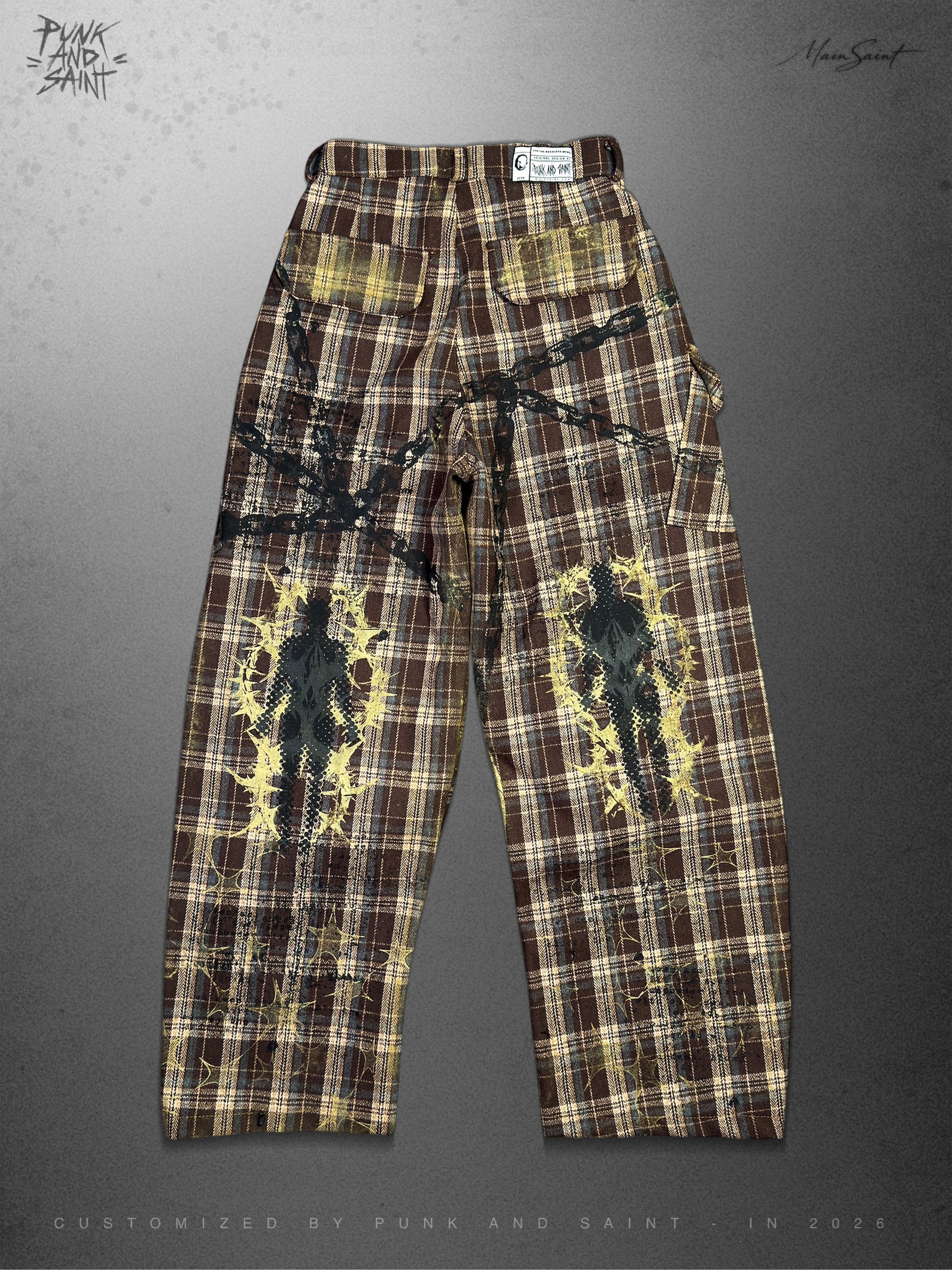 Punk And Saint Custom Baggy Plaid Pleated Pants